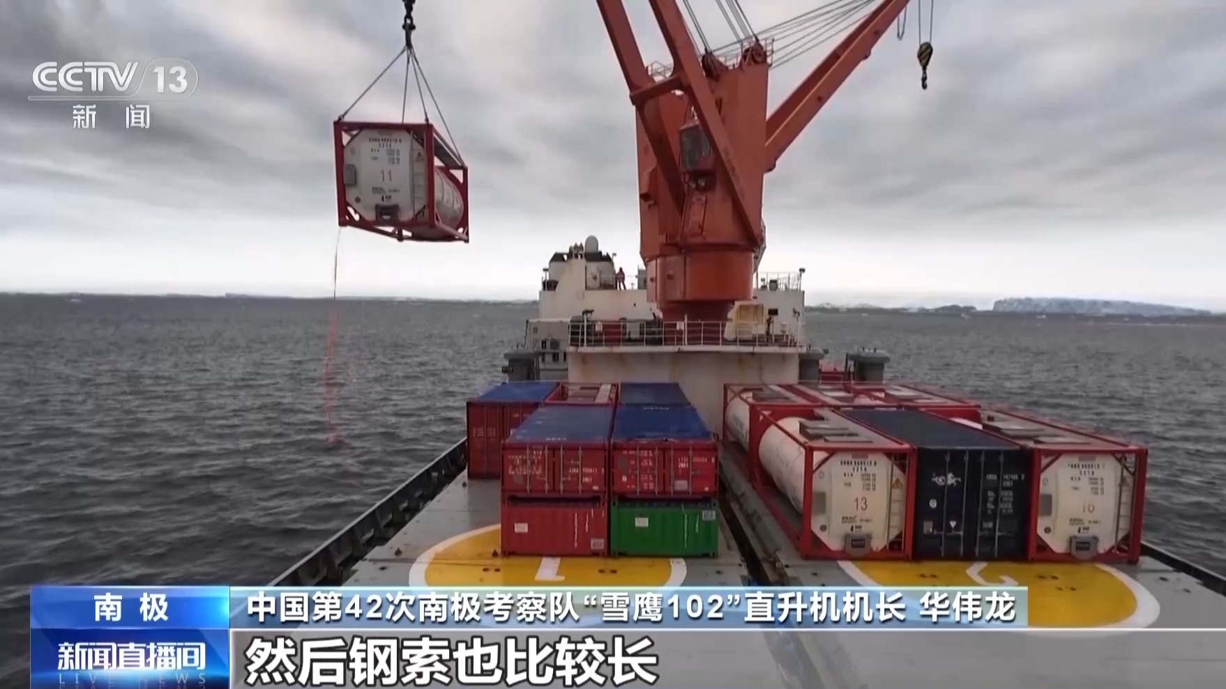 中国第42次南极考察队“雪鹰102”直升机机长 华伟龙:大舱盖吊挂,这是一个难点。大舱盖因为两侧都有障碍物,然后钢索也比较长,舱盖面积又小。