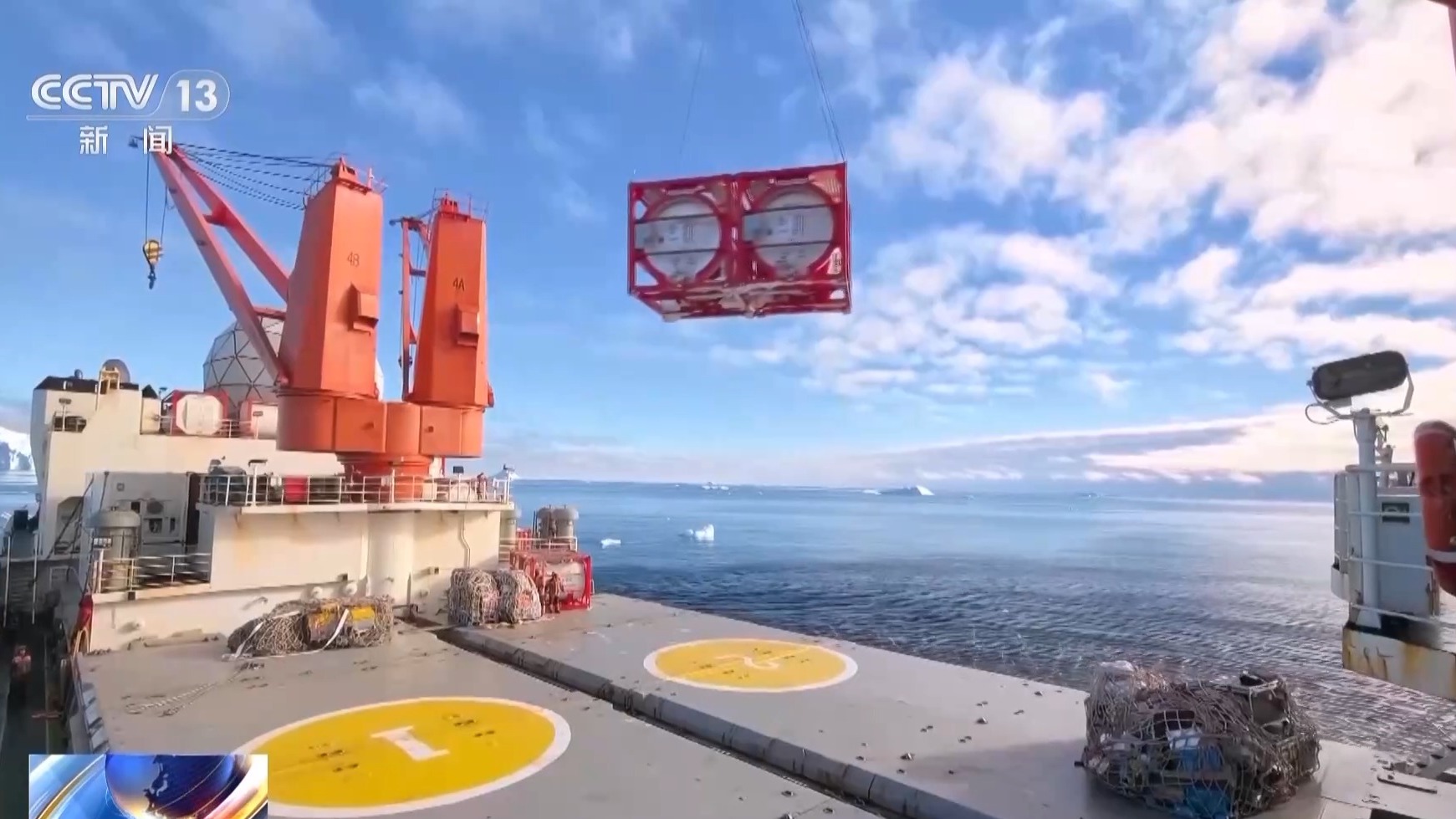 在完成了航空煤油等物资的吊运后,领队魏福海明确了最后要吊运回船的物资。随着中山站最后一个三联箱吊回船上,中山站区域的卸货作业告一段落。