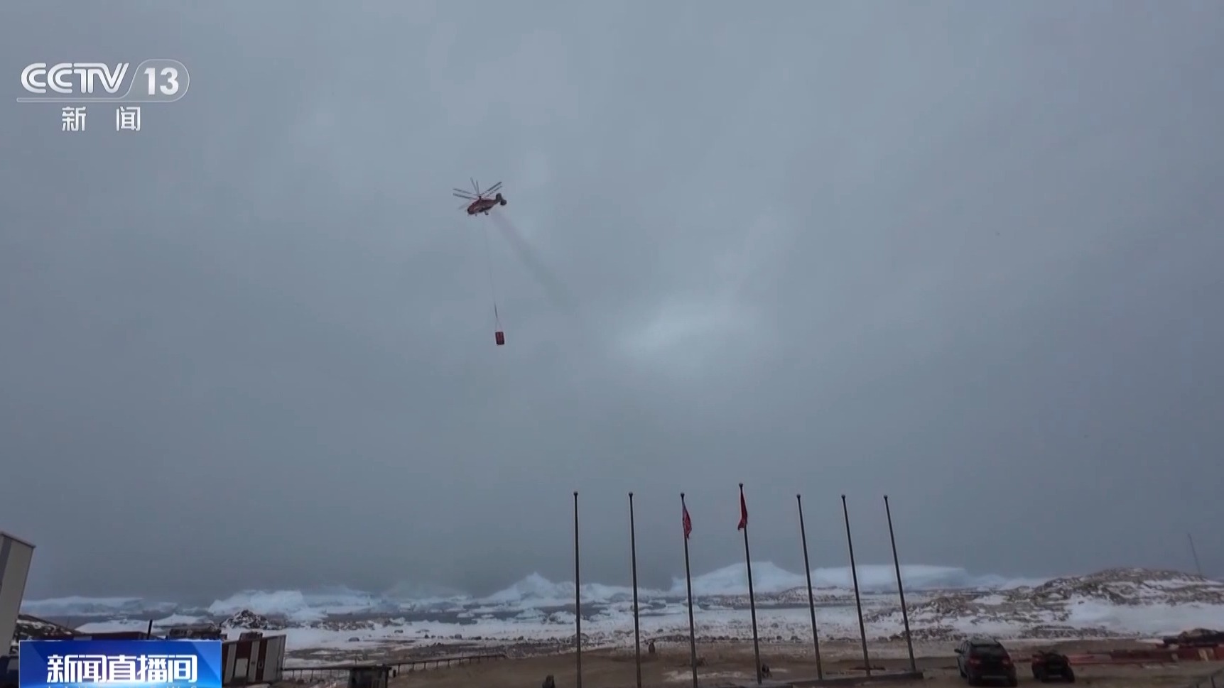 在吊挂作业的最后阶段,“雪鹰102”直升机通过两趟飞行,将在澳大利亚采购的蔬菜、水果等食品补给吊运到站上。