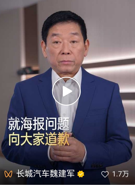 针对近期引发市场热议的“魏牌新车海报涉嫌抄袭”风波,3月6日晚,长城汽车董事长魏建军正式作出公开回应,承认抄袭事实并致歉。